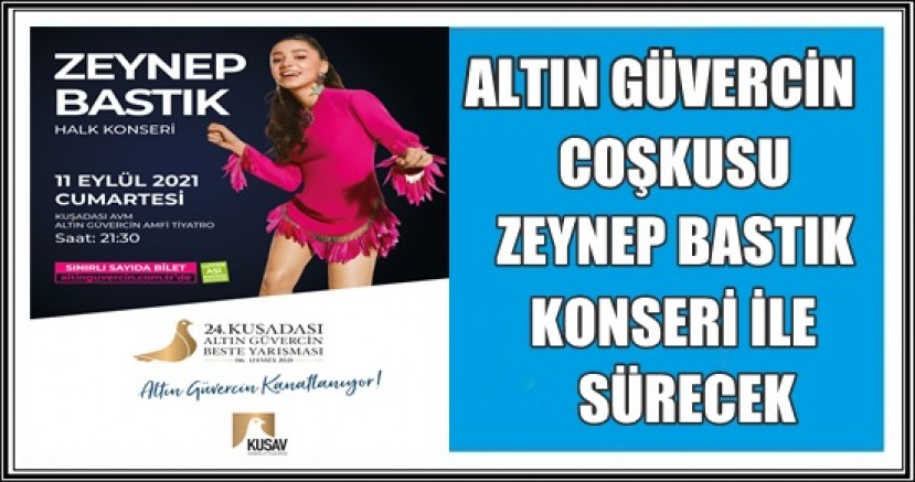 Aydın Büyükşehir Belediyesi, Kuşadası Belediyesi ve Kuşadası Altın Güvercin Kültür, Sanat ve Tanıtım Vakfı (KUSAV) iş birliğinde düzenlenen 24.Kuşadası Altın Güvercin Beste Yarışması, tüm coşkusu ve heyecanı ile sürüyor. 12 Eylül’de düzenlenecek Büyük Final Gecesi ile sona erecek olan Altın Güvercin, Okan Bayülgen ve ekibi tarafından yarışmanın tarihini ortaya koymak amacıyla hazırlanan “Bir Notanın Hikâyesi” adlı belgesel gösteriminin ardından Türk pop müziğinin ünlü ismi Zeynep Bastık’ı ağırlayacak. 11 Eylül’de Kuşadası Altın Güvercin Amfi Tiyatro’da saat 21.30 başlayacak olan konsere katılımcılar aşı kartı veya PCR testi kontrollerinin ardından kabul edilecek.