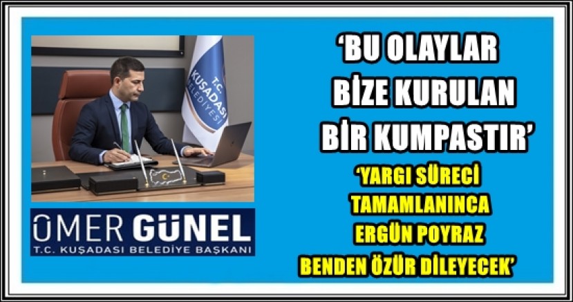 Ergün Poyraz’ın bir yayın organında Kuşadası Belediye Başkanı Ömer Günel hakkında yaptığı suçlamalara Başkan Ömer Günel net cevap verdi. Başkan Ömer Günel “Yargı süreci tamamlanıp, olay aydınlanınca Ergün Bey benden özür dileyecek” dedi.