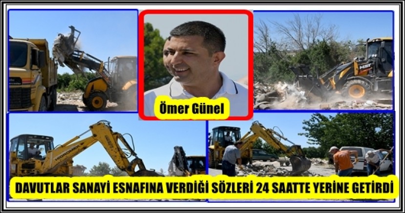 BAŞKAN ÖMER GÜNEL DAVUTLAR SANAYİ ESNAFINA VERDİĞİ SÖZLERİ 24 SAATTE YERİNE GETİRDİ