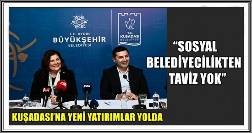 Aydın Büyükşehir Belediye Başkanı Özlem Çerçioğlu ile Kuşadası Belediye Başkanı Ömer Günel, düzenledikleri ortak basın toplantısında, her iki belediye tarafından Kuşadası’nda yaşama geçirilen ve geçirilecek olan hizmetlerle ilgili bilgi verdi. Türkiye’de yaşanan ekonomik kriz nedeniyle belediyelerin yoksullukla mücadele eden kurumlar haline geldiğine dikkat çeken Başkan Özlem Çerçioğlu ve Başkan Ömer Günel, sosyal belediyecilikten ödün vermeyeceklerinin altını çizdi.