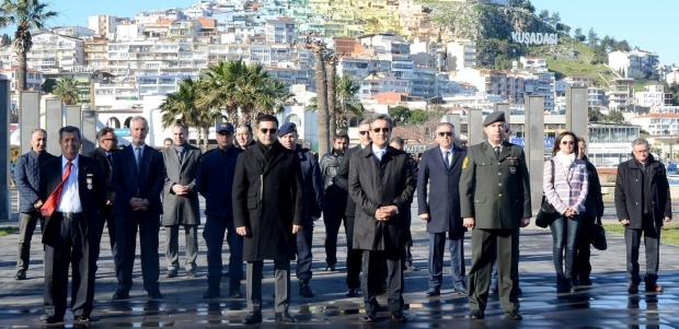 Çanakkale Zaferi’nin 105’inci yıl dönümü nedeniyle Kuşadası’nda çelenk koyma töreni düzenlendi. Çanakkale’de verilen mücadelenin emperyalizme karşı önemli bir direniş olduğunu belirten Kuşadası Belediye Başkanı Ömer Günel, Türkiye Cumhuriyeti için canlarını veren tüm şehitleri rahmetle andıklarını söyledi.
