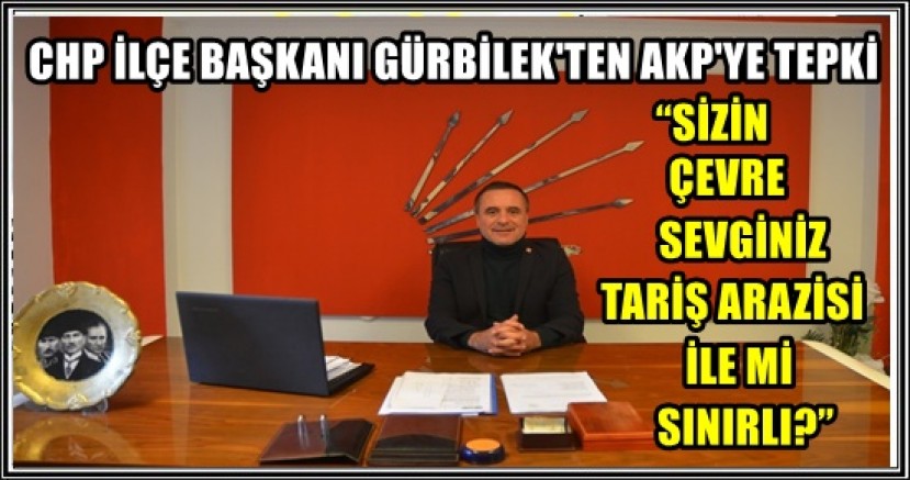 CHP İLÇE BAŞKANI GÜRBİLEK’TEN AKP’YE TEPKİ: “SİZİN ÇEVRE SEVGİNİZ TARİŞ ARAZISI İLE Mİ SINIRLI?”