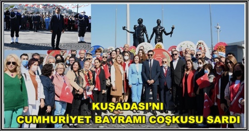 29 Ekim Cumhuriyet Bayramı kutlamaları Kuşadası’nda büyük bir coşkuyla başladı. Kutlama programı kapsamında ilk olarak Atatürk Meydanı’nda çelenk sunma töreni düzenlendi. Törene, Kuşadası Kaymakamı Sadettin Yücel, Kuşadası Belediye Başkanı Ömer Günel, Kuşadası Emniyet Müdürü Mehmet Ali Berksoy, Kuşadası İlçe Milli Eğitim Müdürü İbrahim Ataman, Belediye Başkan Yardımcıları, Belediye Meclis Üyeleri, protokol üyeleri, siyasi parti temsilcileri ve vatandaşlar katıldı.