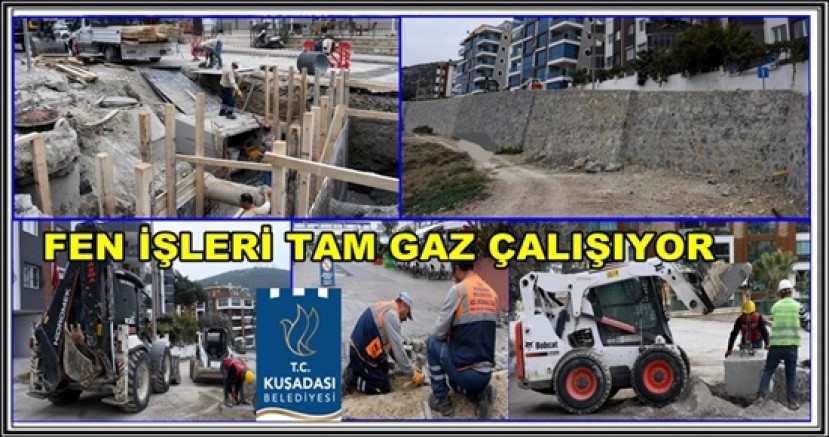 Kuşadası Belediyesi, Aydın Büyükşehir Belediyesi ile iş birliği içerisinde kent genelinde yürüttüğü alt ve üst yapı yatırımlarını aralıksız sürdürüyor. Ege Mahallesi 461’inci sokağa istinat duvarı ören ekipler, aynı bölgede yol yapım ve genişletme çalışması yapıyor. Yoğun yağışlardan kaynaklı yaşanabilecek olası sel baskını ile su taşkınlarının önüne geçmek için Türkmen Mahallesi Alaçam Sokak’ta başlatılan menfez çalışmasında da sona yaklaşıldı.