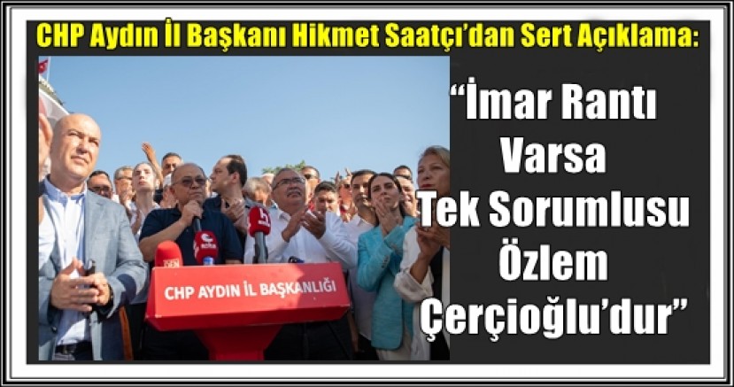 CHP Aydın İl Başkanı Hikmet Saatçı, Aydın Büyükşehir Belediye Başkanı Özlem Çerçioğlu’nun son dönemde kamuoyuna yansıyan “imar rantı” iddialarıyla ilgili sert bir açıklama yaptı. İl Başkanı Saatçı, Çerçioğlu’nun açıklamalarının gerçeği yansıtmadığını öne sürerek, “Bir şehirde imar planlarının hazırlanması, değiştirilmesi ve onaylanması Büyükşehir Belediyesi’nin yetkisindedir. Dolayısıyla Aydın’da bir imar rantı varsa, bunun tek sorumlusu Özlem Çerçioğlu’dur” dedi.