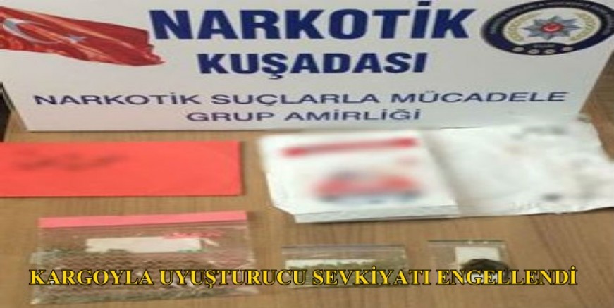 26.07.2019 günü saat: 17:20 sıralarında Kuşadası ilçe Emniyet Müdürlüğü Narkotik Grup Amirliği tarafından alınan bilgiler doğrultusunda gerçekleştirilen operasyonel çalışmada; yurtdışından kargo aracılığı ile uyuşturucu madde gönderildiğinin tespit edilmesi üzerine bahse konu kargo ekipler tarafindan alınmış, zarf içinde bulunan düğün davetiyesinin içine saklanmış vaziyette üç parça olarak düzgün sarılmış 16,37 gr esrar maddesi ele geçirilmiştir. Yapilan incelemede gönderenin belli olmadığı alıcını ise A.T. isimli şahsın olduğu tespit edilmiş, Şahıs Cumhuriyet Mahallesinde bulunan ikametinde yakalanarak gözaltına alınmıştır. Şahıs Emniyetteki işlemlerinin ardından adlı makamlara sevk edilmiştir.