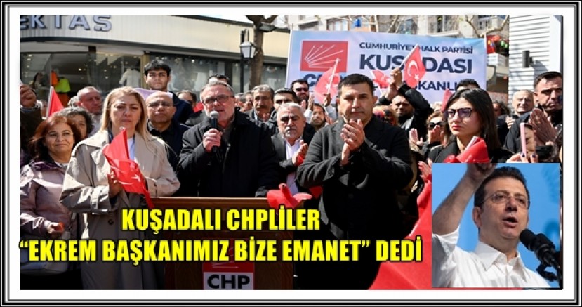 Cumhuriyet Halk Partisi (CHP) Kuşadası İlçe Örgütü, İstanbul Büyükşehir Belediye Başkanı ve CHP'nin cumhurbaşkanı aday adayı Ekrem İmamoğlu'nun gözaltına alınmasına, yaptıkları basın açıklaması ile sert tepki gösterdi. Türkiye’nin 81 il ve 922 ilçesinde eş zamanlı olarak gerçekleştirilen basın açıklaması için CHP Kuşadası İlçe Örgütü’nün önünde toplanan partililer, ellerinde taşıdıkları Türk bayrakları ile Kaya Şavkay Meydanı’na kadar yürüdüler.