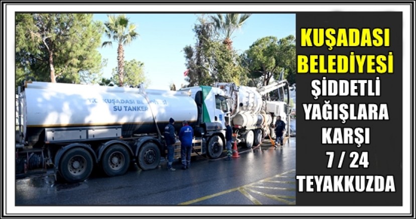 KUŞADASI BELEDİYESİ ŞİDDETLİ YAĞIŞLARA KARŞI 7 / 24 TEYAKKUZDA