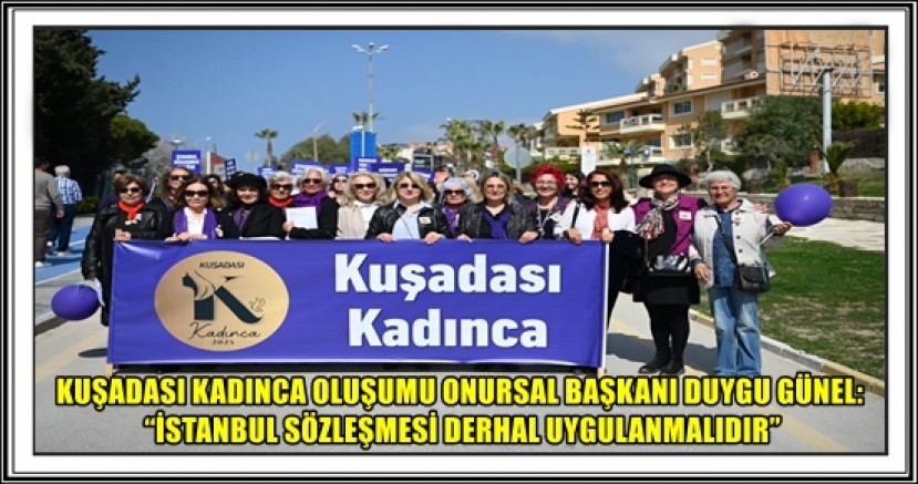 KUŞADASI KADINCA OLUŞUMU ONURSAL BAŞKANI DUYGU GÜNEL: “İSTANBUL SÖZLEŞMESİ DERHAL UYGULANMALIDIR”