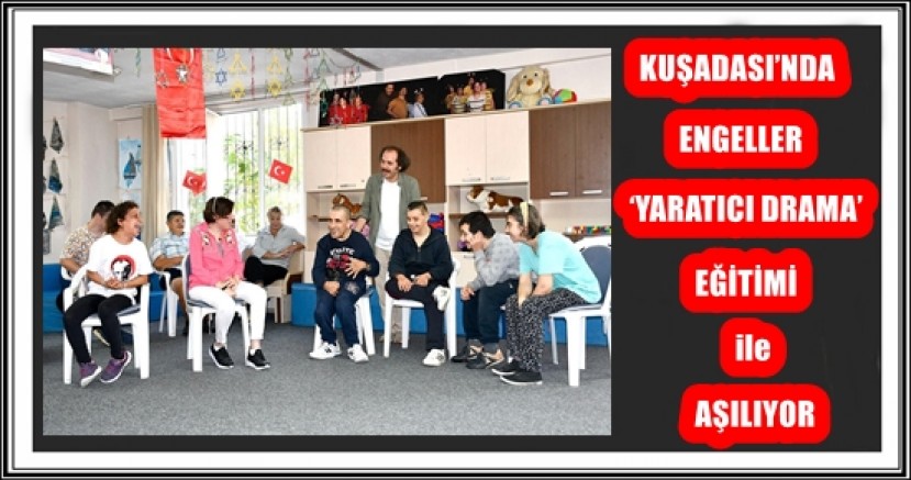 Kuşadası Belediye Tiyatrosu tarafından Kirazlı Yolu üzerinde bulunan Erdoğan Öven Engelliler Köyü’nde, engelli öğrenciler için haftada iki gün yaratıcı drama dersi veriliyor. Pazartesi ve perşembe günleri düzenlenen eğitim, farklı yaşlardan engelli bireylerin dikkat ve odaklanma sürelerini arttırmak, toplumsal hayata uyumlarını kolaylaştırmak ve iletişim becerilerini güçlendirmek amacıyla gerçekleştiriliyor. Doğaçlama tekniğinin kullanıldığı yaratıcı drama eğitiminde, engelli öğrenciler keyifli ve verimli vakit geçirme fırsatı da buluyor. Engelli öğrenciler, haziran ayına kadar sürecek olan eğitimden sonra hünerlerini sahneye koyacakları bir oyunla sergileyecek.