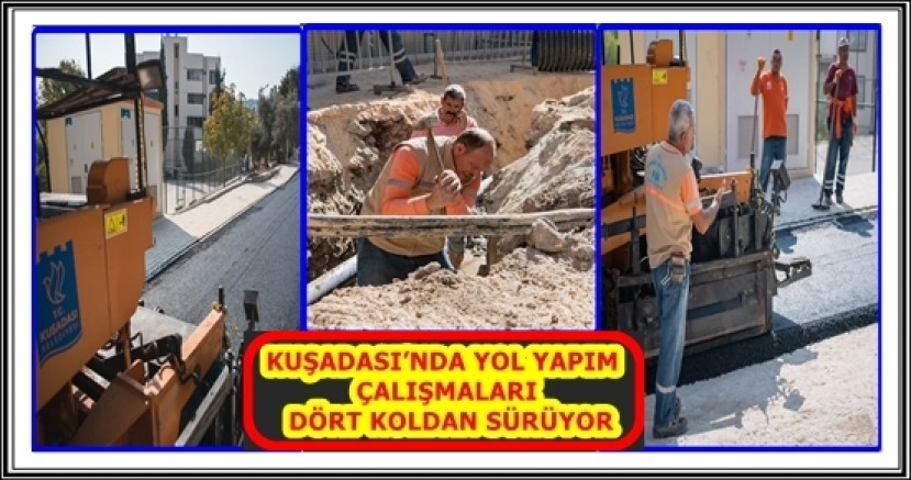 KUŞADASI’NDA YOL YAPIM ÇALIŞMALARI DÖRT KOLDAN SÜRÜYOR