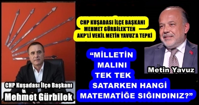CHP KUŞADASI İLÇE BAŞKANI MEHMET GÜRBİLEK’TEN AKP’Lİ VEKİL METİN YAVUZ’A TEPKİ