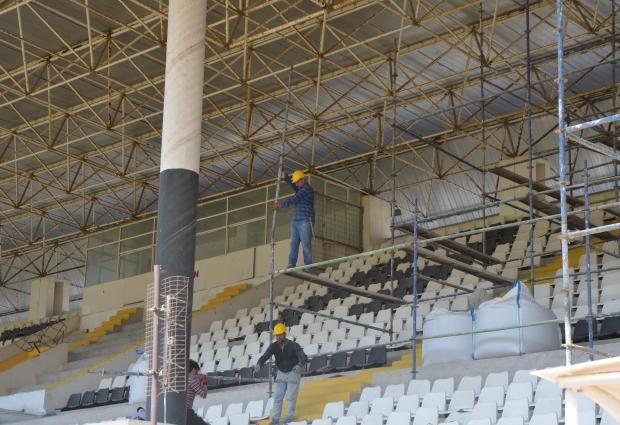 Kuşadası’nda uzun yıllar spor müsabakalarına ev sahipliği yapan Özer Türk Stadyumu yeni yüzüne kavuşuyor. Kuşadası Belediyesi tarafından gerçekleştirilen çalışmalar kapsamında stadyumun yedek kulübeleri ve tribünleri yenilenecek. Bu kapsamda kompleksin tribünlerini kapatan kafes sistem uzay çatılar, kumlama yöntemiyle temizlenerek sac tavanlar yenileriyle değiştirilecek. Ayrıca stadyumun çim zemininde ve koşu yolunda bakım çalışmaları yapılacak.