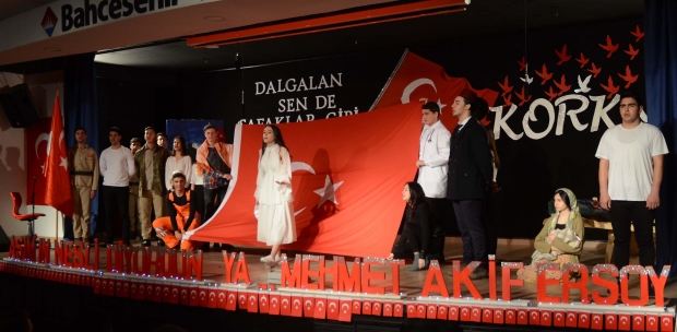 Kuşadası’nda İstiklal Marşı’nın kabulünün 99’uncu yıl dönümü nedeniyle bir tören düzenlendi. Kuşadası Kaymakamlığı öncülüğünde düzenlenen törende öğrenciler tarafından sahnelenen oratoryo büyük beğeni aldı.