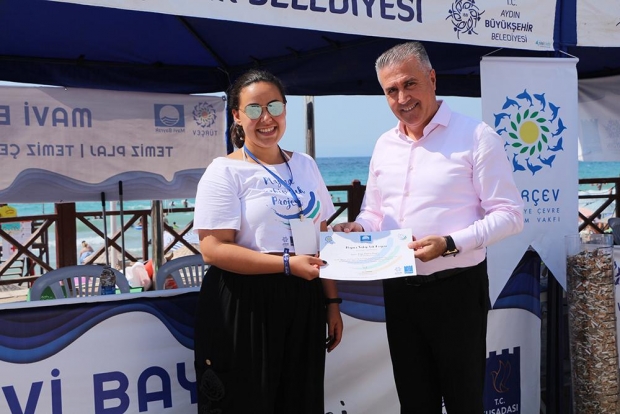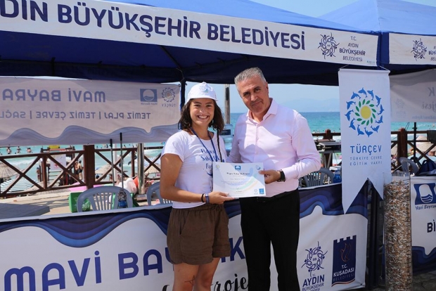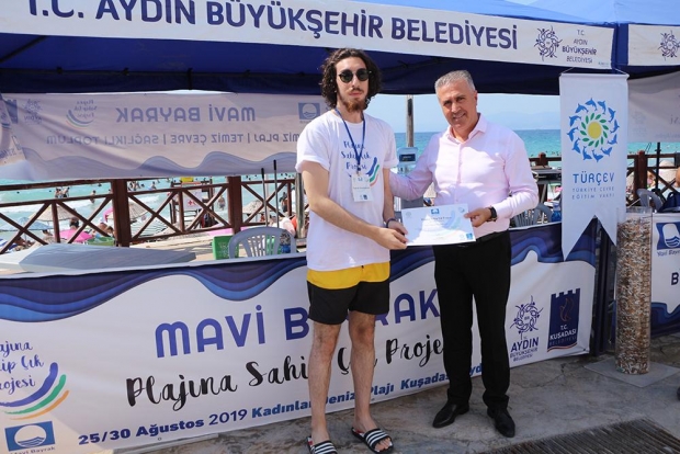 Kuşadası Belediyesi ve Aydın Büyükşehir Belediyesinin destekleriyle Kuşadası Kadınlar Denizi plajında başlayan projenin ilk ayağı sona erdi. TÜRÇEV(Türkiye Çevre Eğitim Vakfı) koordinatörlüğünde yürütülen projeye katılan gönüllü öğrencilere sertifika verildi. Ödül törenine katılan Kuşadası Belediye Başkan Yardımcısı Oğuzhan Turan Uygulamaları ve çevre bilincine yaptıkları katkı için TÜRÇEV’e teşekkür ederek, organizasyonun önümüzdeki sene büyüyerek devam etmesini dilediklerini belirtti.