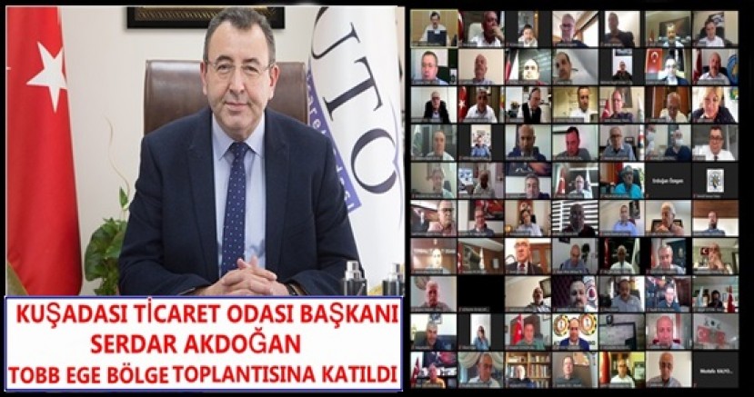 Hisarcıklıoğlu’nun, video konferans aracılığıyla düzenlenen Ege Bölge toplantısına katılarak bölge oda/borsa başkanları ile istişarelerde bulunduğu toplantıya, Kuşadası Ticaret Odası Yönetim Kurulu Başkanı Serdar Akdoğan katıldı.