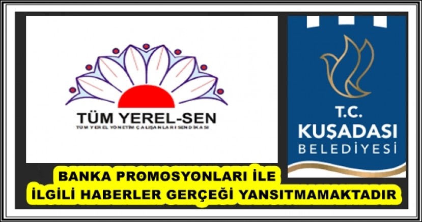 Birleşik Kamu İş Konfederasyonu’na bağlı Tüm Yerel Sen, Kuşadası Belediyesi çalışanlarına verilecek olan banka promosyonları konusunda basında ve sosyal medyada yer alan gerçek dışı haberler ile ilgili bir açıklama yaptı. Tüm Yerel Sen, açıklamasında banka promosyonları ile ilgili olarak Kuşadası Belediyesi yönetiminin ve sendikanın herhangi bir müdahalesi bulunmasının söz konusu olmadığına dikkat çekti.